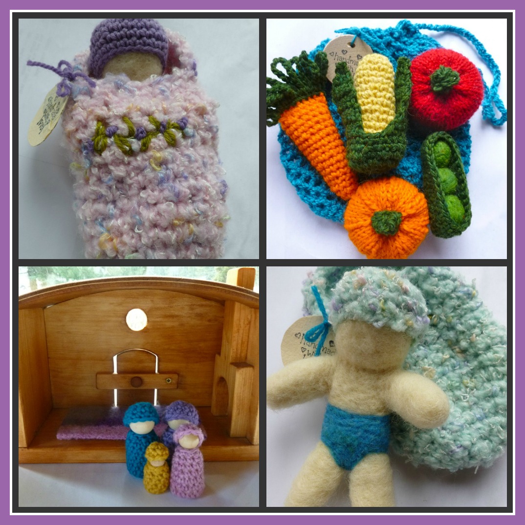 Today I added a set of wool balls ( more balls coming soon),Mary had a little lamb play set, gnomes in a pouch set and a Valentine bunting doll set.